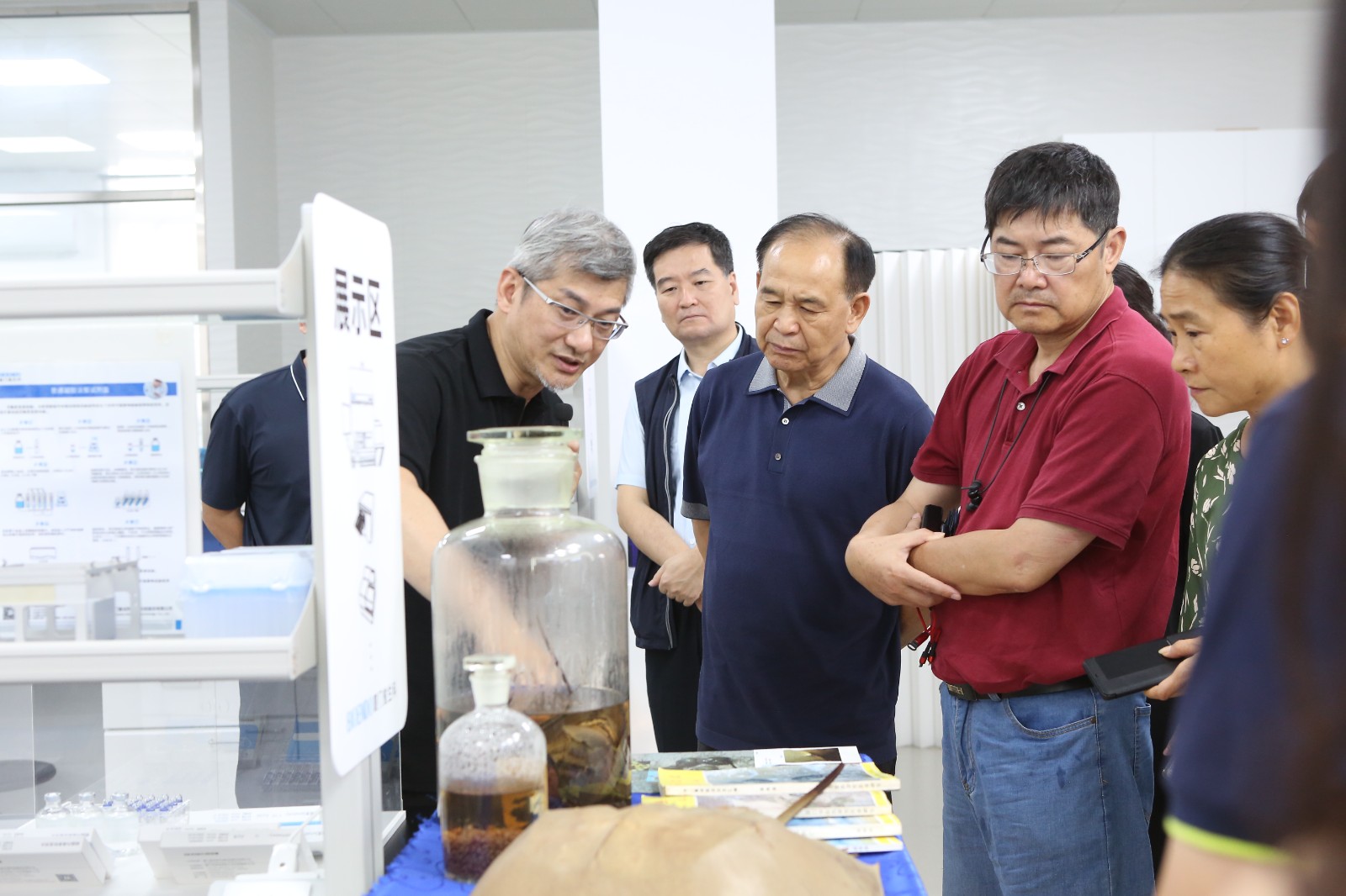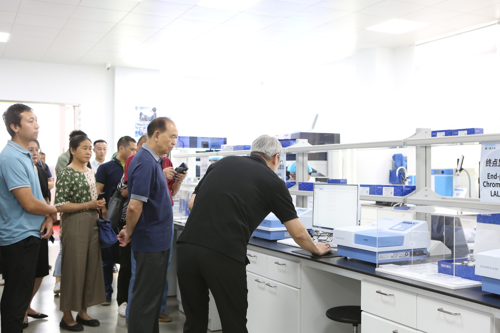 我司董事長吳尚毅先生向李彥亮會長及調研組各位領導、專家介紹我司具有內毒素檢測行業最全方法學"一條龍"系列產品,同時向調研組匯報了我司因應目前鱟試劑資源及內毒素檢測發展趨勢,積極研發國際領先可持續發展內毒素檢測技術。通過技術上的創新突破,應用重組技術研發重組因子試劑以期實現未來無需使用天然鱟血細胞就能制造內毒素檢測試劑的目標,替代天然鱟試劑的使用,以更好的保護“活化石"鱟。